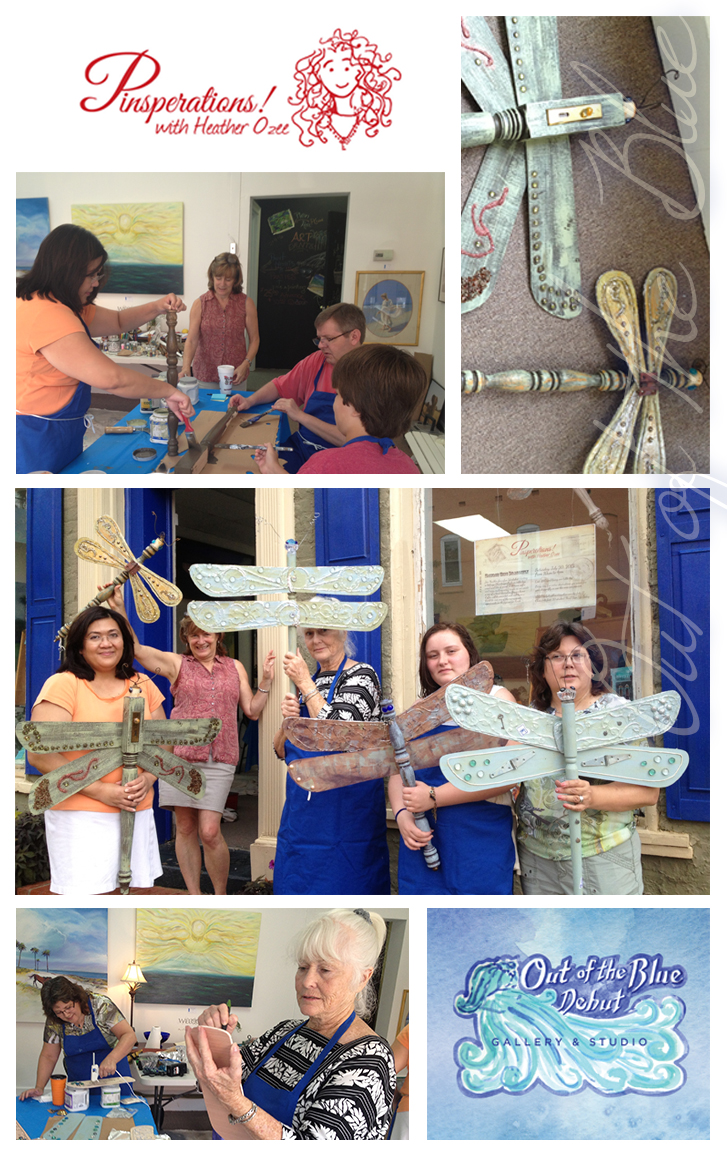 Last Saturday's Pinspirations class at The Blue was a hit. We had a great time going step by step over the process of bringing to life a one of a kind dragonfly. Lots of laughs were had and techniques learned. Who knew you could do so much with salvage scrap parts from old lights and doors. We had lunch at the Redneck Gourmet which was amazing! The top pick from my crew at The Redneck had to be the burgers, onion rings and the KahlĂșa Crunch. We'll be doing this workshop again so if you are interested in being part of it, email me or leave a comment here. When that class is workshop is scheduled, you'll be the first to know!